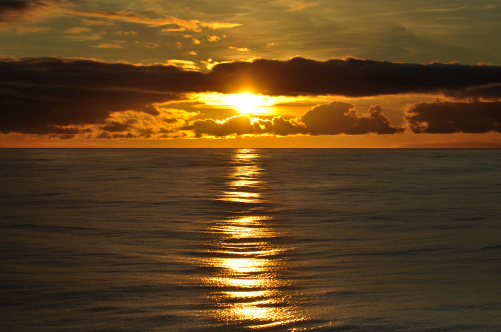 7.45am – Fiona and Richard are shown to their table by Paul. Fiona doesn’t like the table she’s been shown to and asks if she can sit in the next dining bay. Paul obliges and shows them to their table. Fiona doesn’t want to sit with her back to the front of the ship and swaps seats with Richard. After cereals, coffee, scrambled eggs, mushrooms and tomato, a croissant and a slice of that smelly French cheese, Fiona slips a couple of bread-rolls, small pots of jam and a banana into her bag. Richard thinks Paul saw her do it. On deck 9 Ellie gets a brilliant shot of the sun rising.